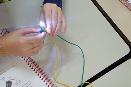 Os estudantes do 5º ano do CERB participaram de uma atividade especial que uniu teoria e prática no estudo da eletricidade. Durante a aula, eles montaram um circuito elétrico simples, fazendo uma lâmpada de LED acender e um ventilador com motor DC entrar em funcionamento.