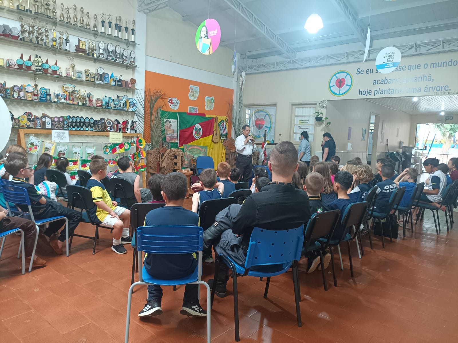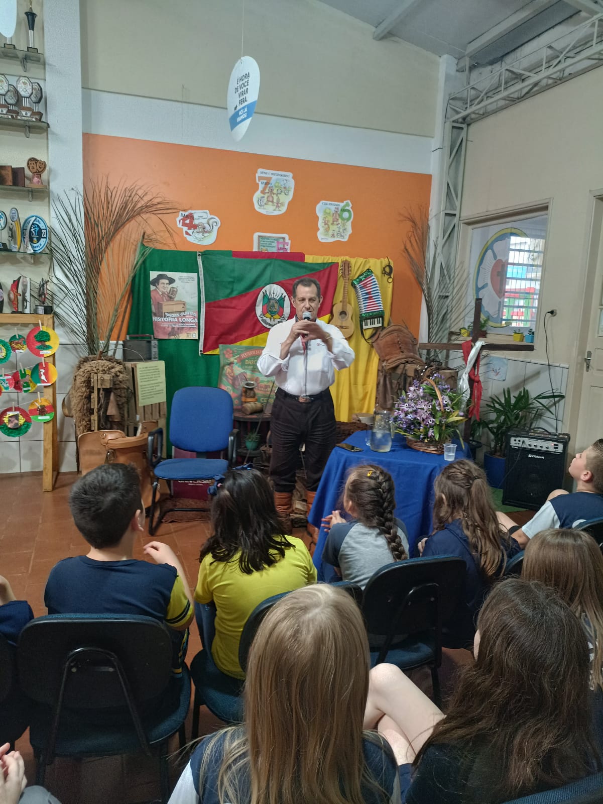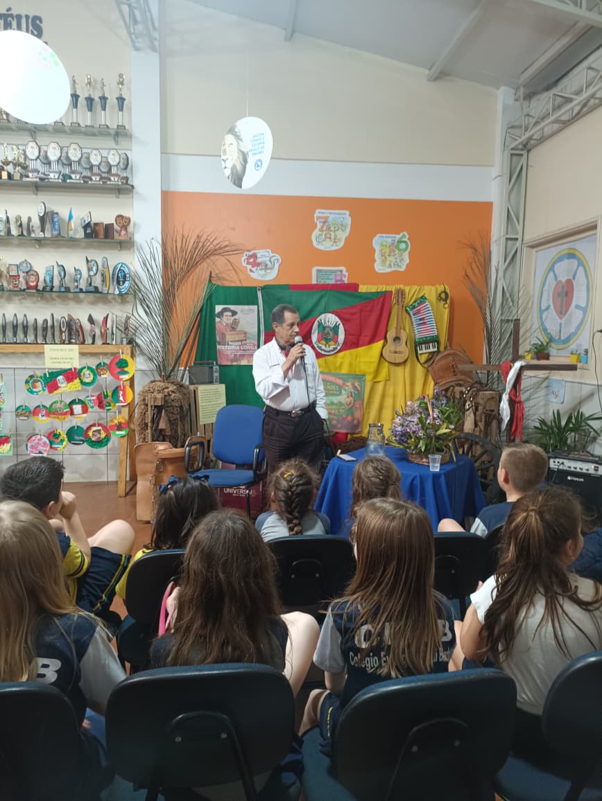 Durante a palestra, Nilson relembrou momentos marcantes da trajetória do rádio e destacou o papel de Darcy Fagundes como referência na comunicação e na valorização das tradições do Rio Grande do Sul. Sua presença foi motivo de grande inspiração, proporcionando à comunidade escolar um encontro de aprendizado, reflexão e valorização da história regional.